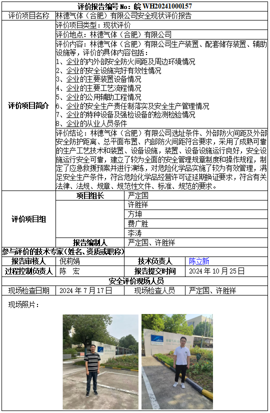 林德氣體(合肥)有限公司安全現(xiàn)狀評價報告