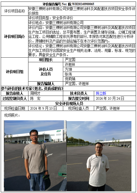 安徽三棵樹涂料有限公司安徽三棵樹涂料及其配套技改項(xiàng)目安全條件評價(jià)報(bào)告