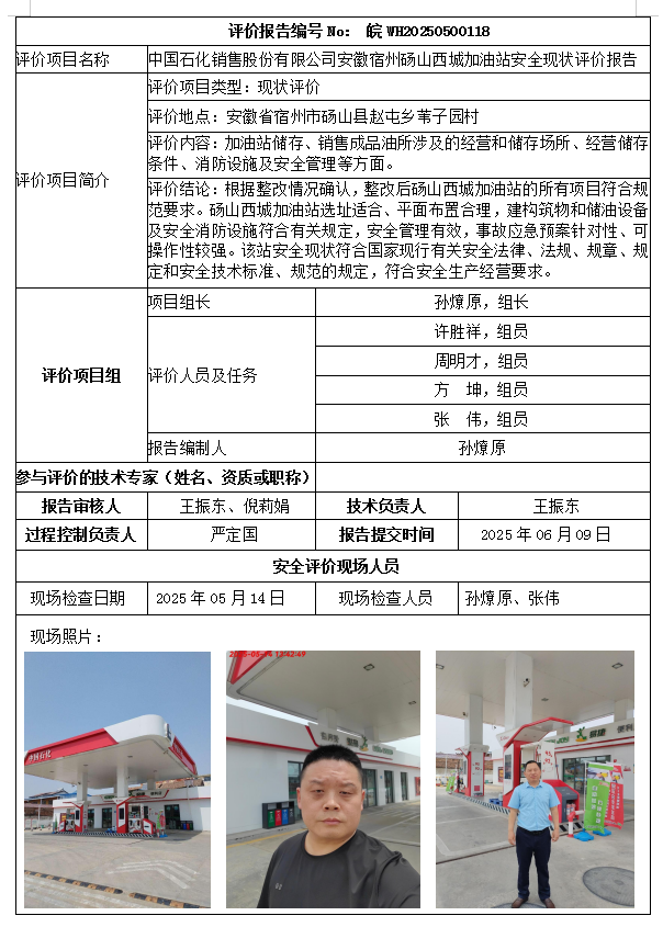 中國石化銷售股份有限公司安徽宿州碭山西城加油站安全現(xiàn)狀評價報(bào)告