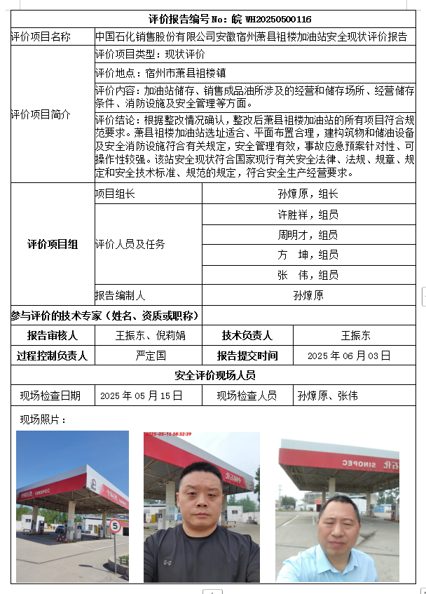 中國(guó)石化銷售股份有限公司安徽宿州蕭縣祖樓加油站安全現(xiàn)狀評(píng)價(jià)報(bào)告