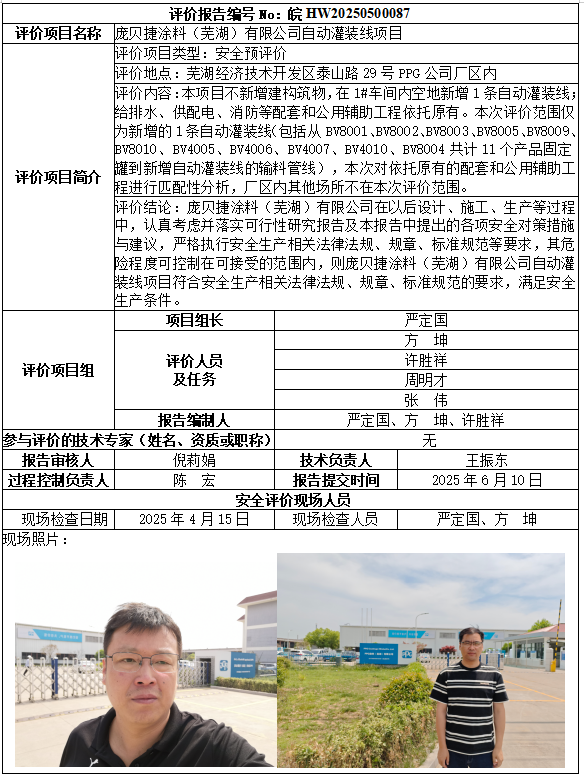 龐貝捷涂料(蕪湖)有限公司自動(dòng)灌裝線項(xiàng)目安全預(yù)評(píng)價(jià)