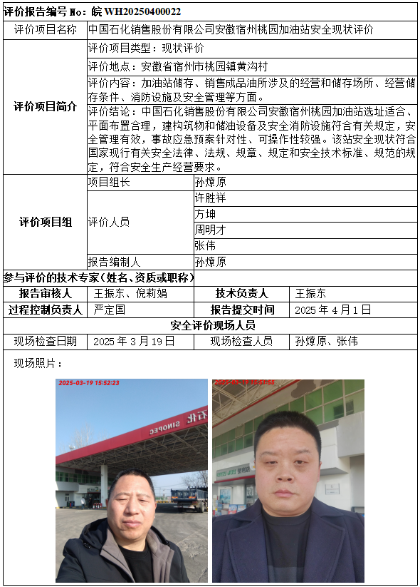 中國石化銷售股份有限公司安徽宿州桃園加油站安全現(xiàn)狀評價
