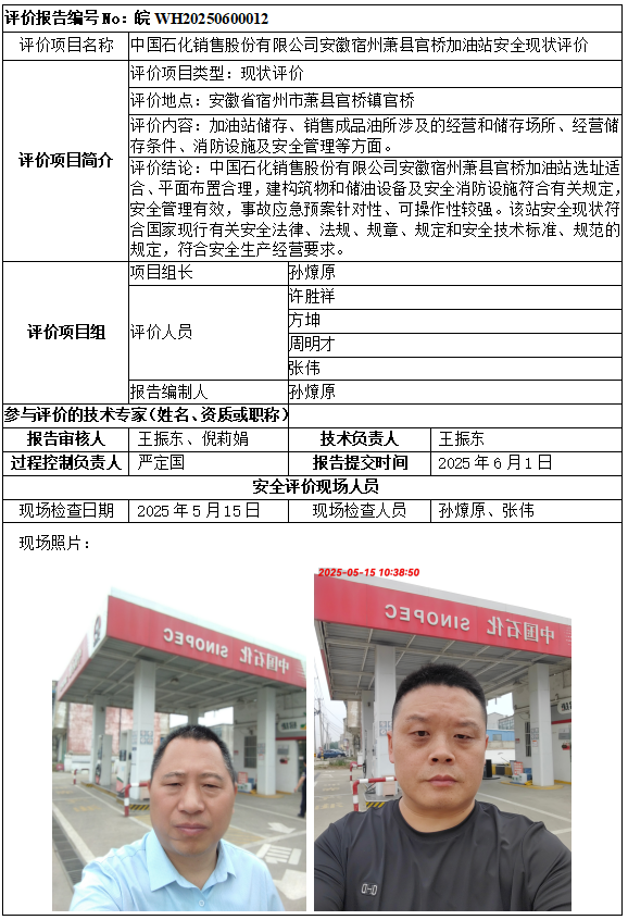 中國(guó)石化銷(xiāo)售股份有限公司安徽宿州蕭縣官橋加油站安全現(xiàn)狀評(píng)價(jià)