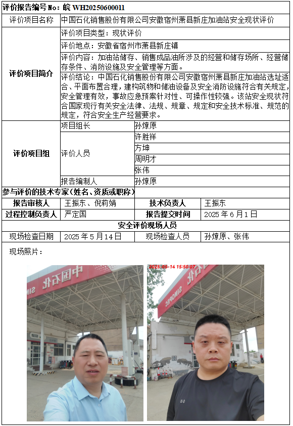 中國(guó)石化銷售股份有限公司安徽宿州蕭縣新莊加油站安全現(xiàn)狀評(píng)價(jià)