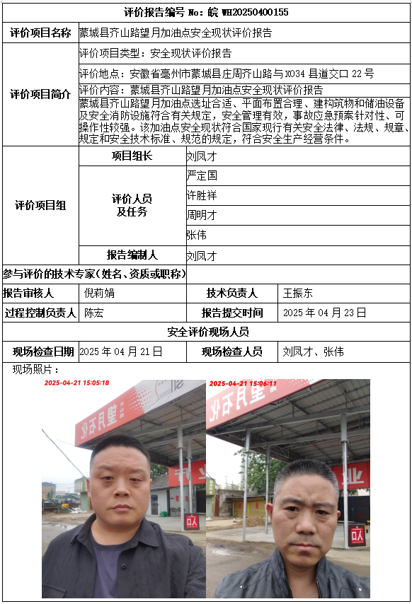 蒙城縣齊山路望月加油點(diǎn)安全現(xiàn)狀評價報告