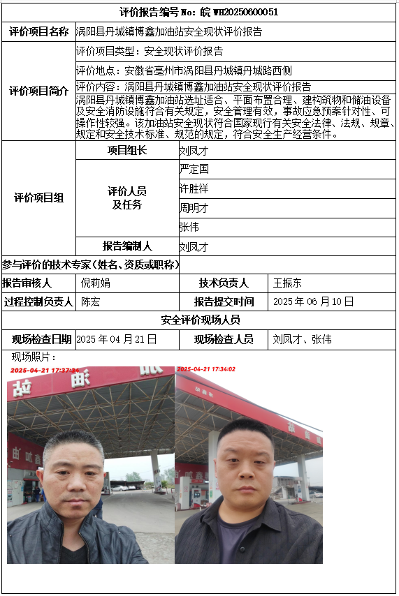 渦陽縣丹城鎮(zhèn)博鑫加油站安全現(xiàn)狀評價報告