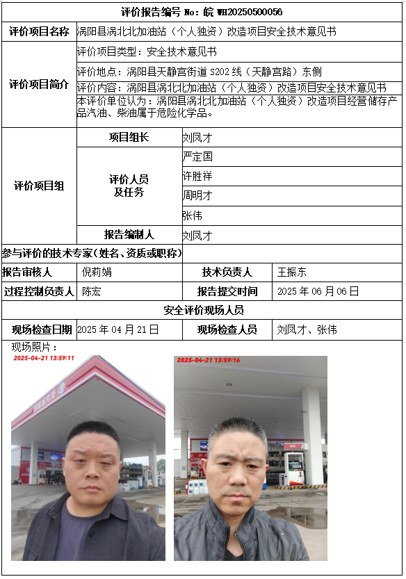 渦陽(yáng)縣渦北北加油站(個(gè)人獨(dú)資)改造項(xiàng)目安全技術(shù)意見(jiàn)書