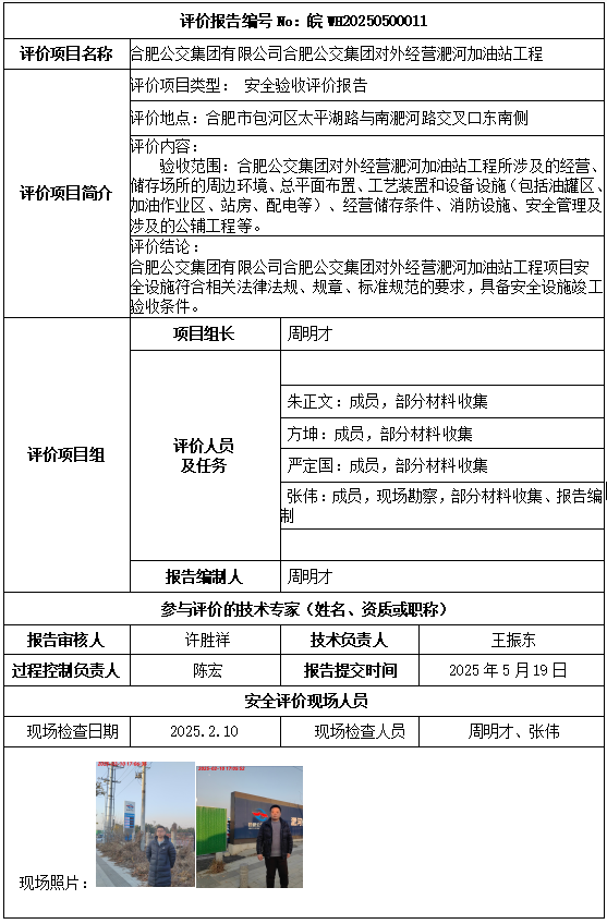 合肥公交集團有限公司合肥公交集團對外經(jīng)營淝河加油站工程安全驗收評價報告
