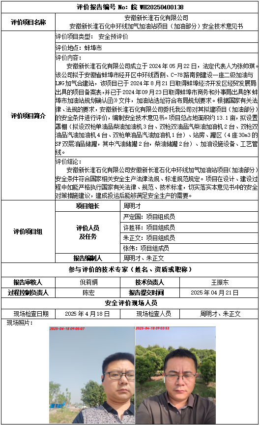 安徽新長(zhǎng)淮石化有限公司 安徽新長(zhǎng)淮石化中環(huán)線加氣加油站項(xiàng)目(加油部分)安全技術(shù)意見書