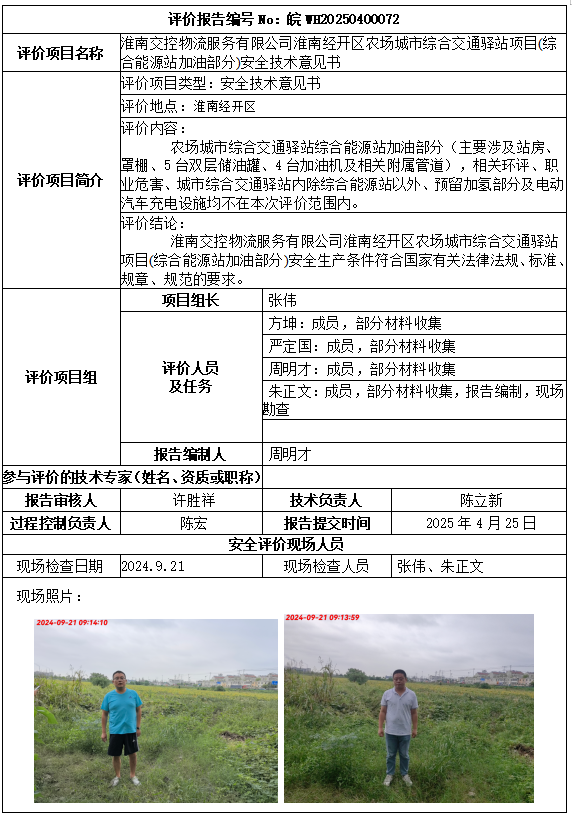 淮南交控物流服務有限公司淮南經開區(qū)農場城市綜合交通驛站項目(綜合能源站加油部分)安全技術意見書