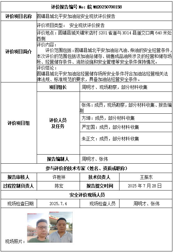 固鎮(zhèn)縣城北平安加油站安全現(xiàn)狀評價報告