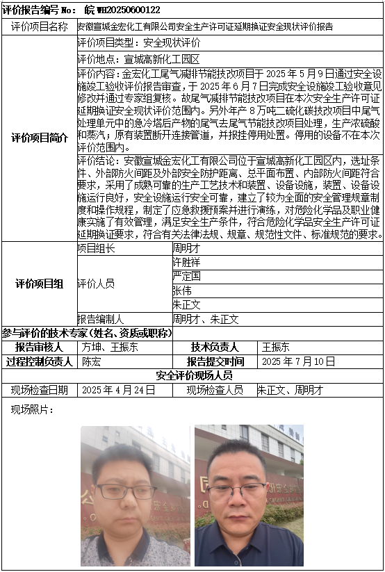 安徽宣城金宏化工有限公司安全生產(chǎn)許可證延期換證安全現(xiàn)狀評價報告