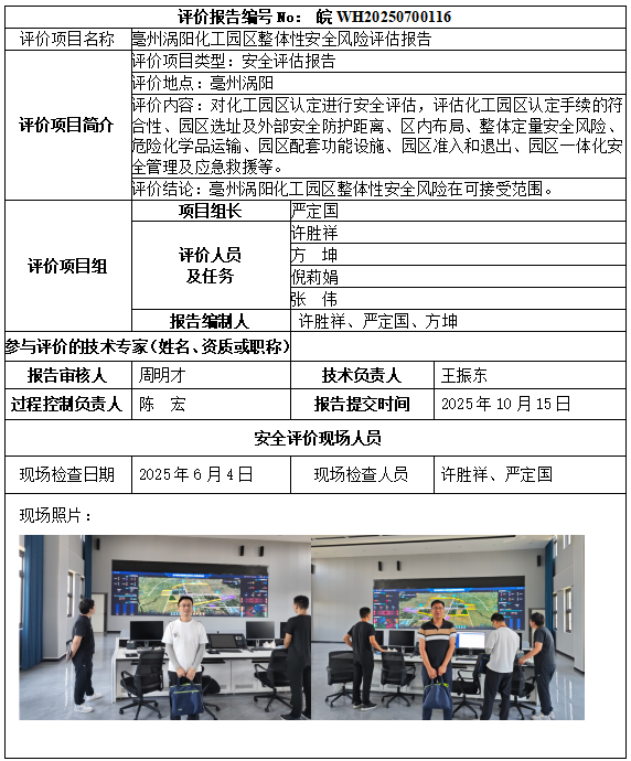 亳州渦陽化工園區(qū)整體性安全風(fēng)險評估報告