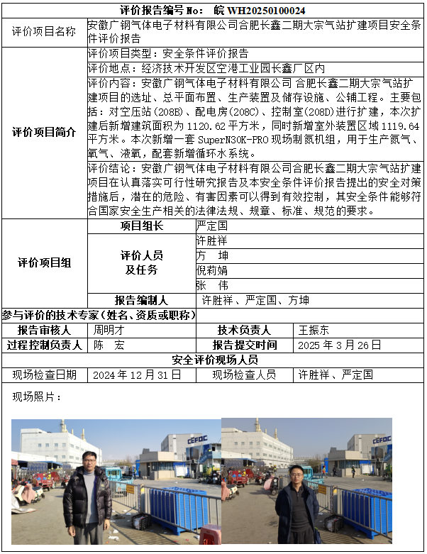 安徽廣鋼氣體電子材料有限公司合肥長鑫二期大宗氣站擴(kuò)建項(xiàng)目安全條件評價(jià)報(bào)告