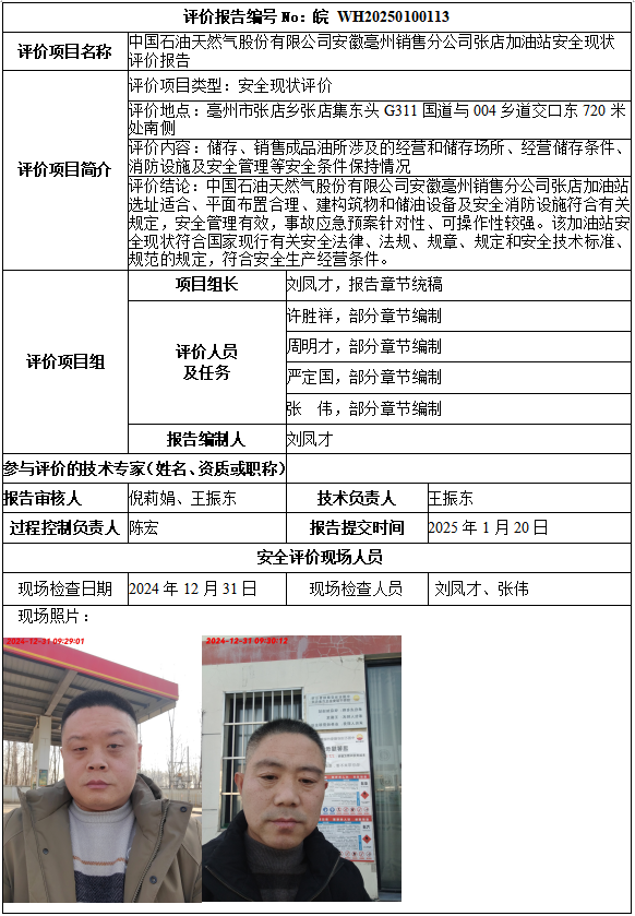 中國(guó)石油天然氣股份有限公司安徽亳州銷售分公司張店加油站安全現(xiàn)狀評(píng)價(jià)報(bào)告