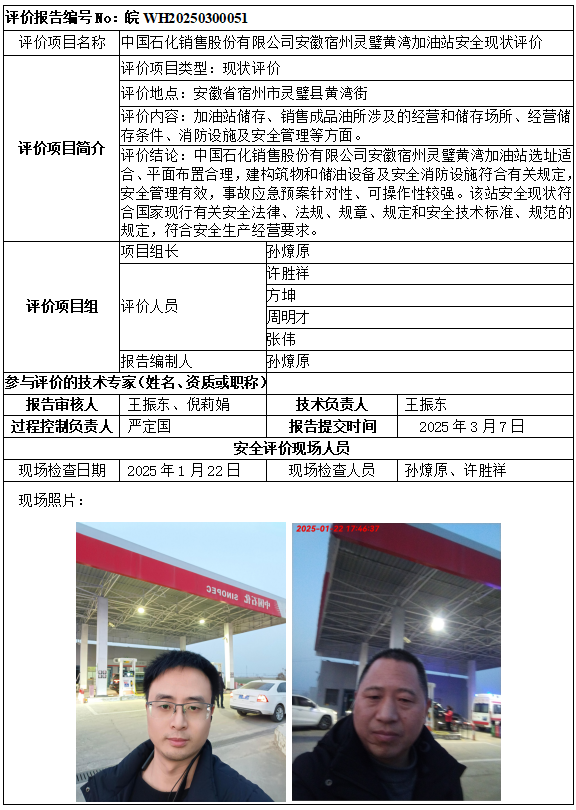 中國(guó)石化銷售股份有限公司安徽宿州靈璧黃灣加油站安全現(xiàn)狀評(píng)價(jià)