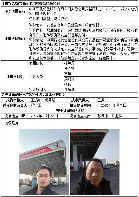 中國(guó)石化銷(xiāo)售股份有限公司安徽宿州靈璧邵埝加油站(加油部分)建設(shè)項(xiàng)目安全現(xiàn)狀評(píng)價(jià)