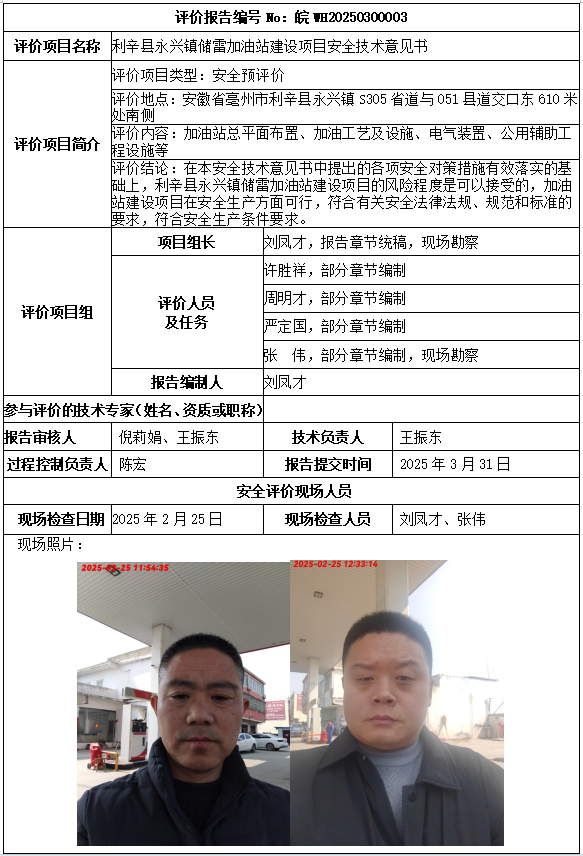 利辛縣永興鎮(zhèn)儲雷加油站建設項目安全技術(shù)意見書