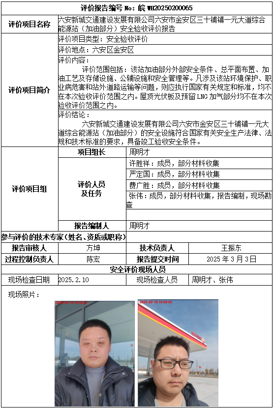 六安新城交通建設(shè)發(fā)展有限公司六安市金安區(qū)三十鋪鎮(zhèn)一元大道綜合能源站(加油部分)安全驗(yàn)收評(píng)價(jià)報(bào)告