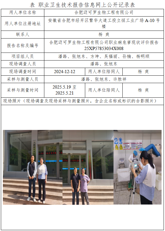 合肥邁可羅生物工程有限公司職業(yè)病危害現(xiàn)狀評價報告