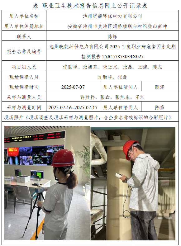 池州皖能環(huán)保電力有限公司2025年度職業(yè)病危害因素定期檢測報(bào)告