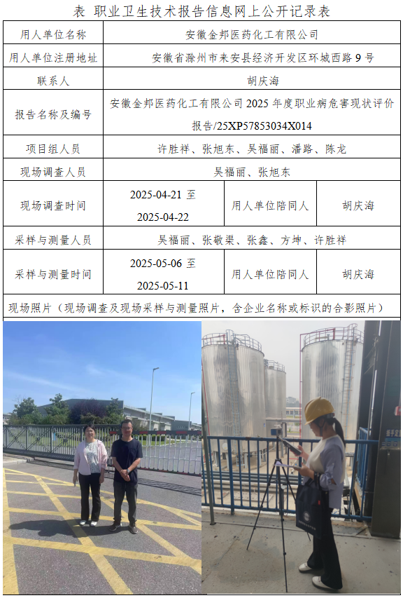 安徽金邦醫(yī)藥化工有限公司2025年度職業(yè)病危害現(xiàn)狀評價報告