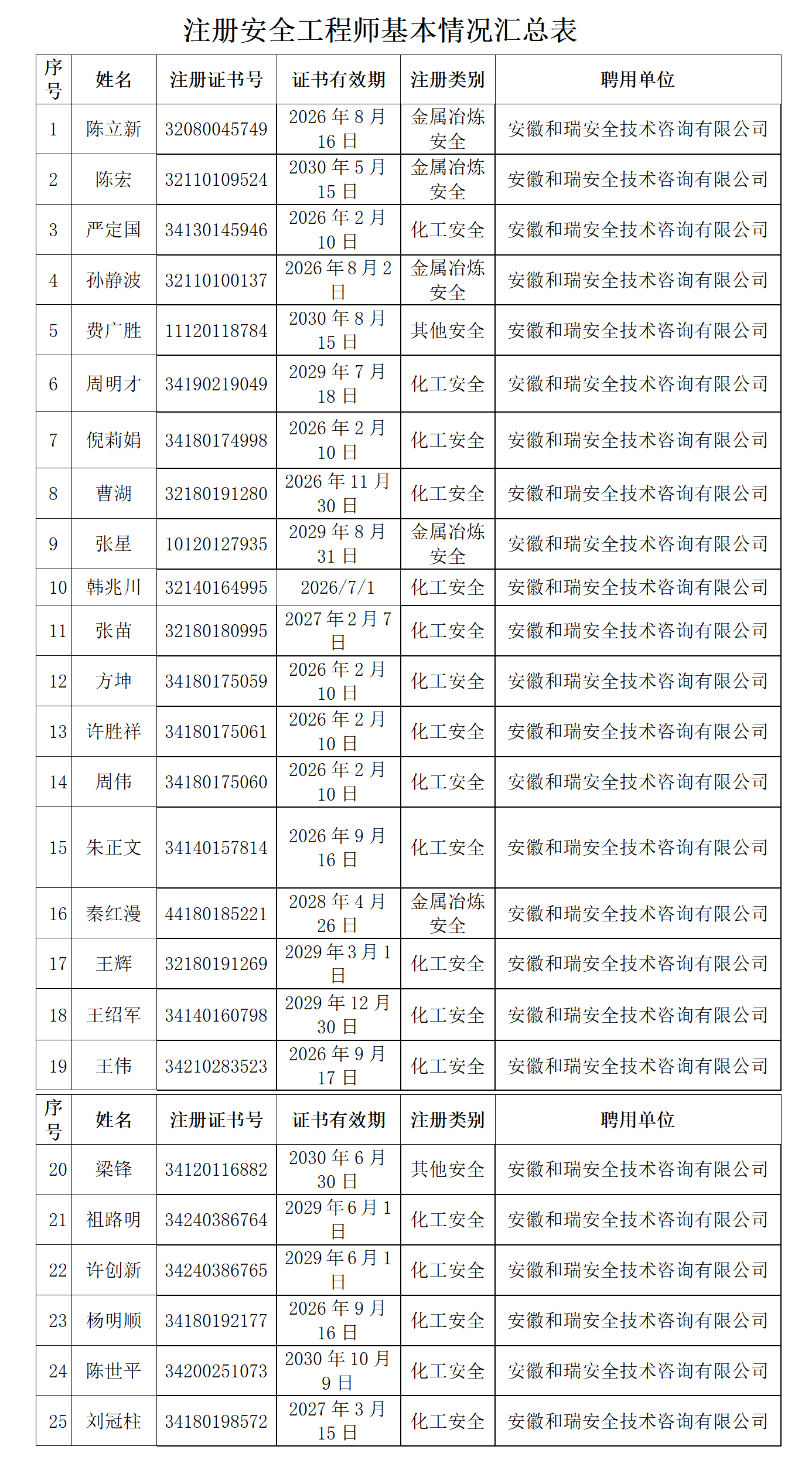 注冊(cè)安全工程師人員表