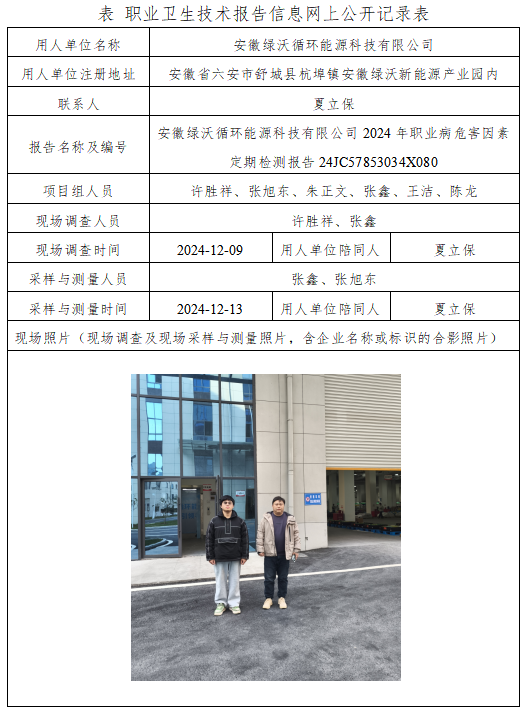 安徽綠沃循環(huán)能源科技有限公司2024年職業(yè)病危害因素定期檢測(cè)報(bào)告