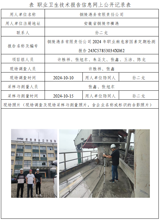 銅陵港務(wù)有限責(zé)任公司2024年職業(yè)病危害因素定期檢測報(bào)